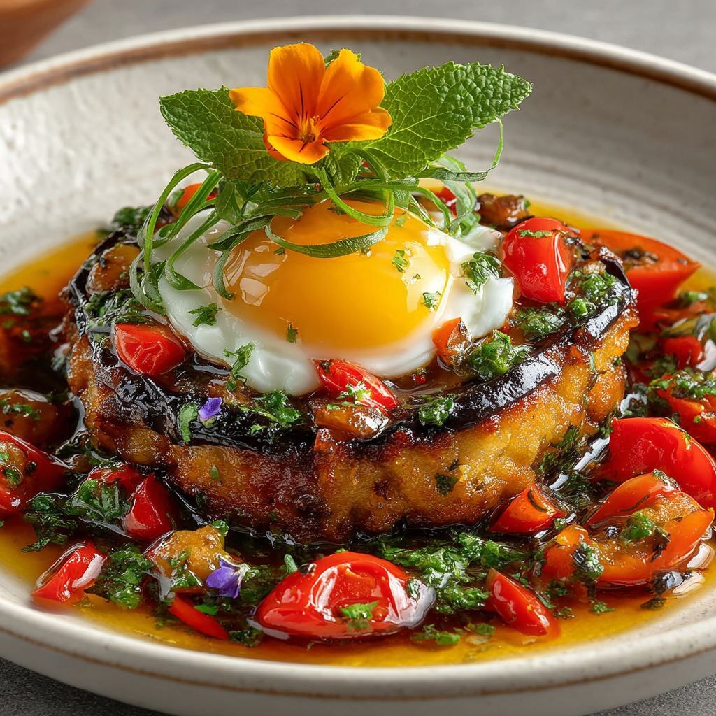 Гратен из баклажанов с яцом и томатами черри.