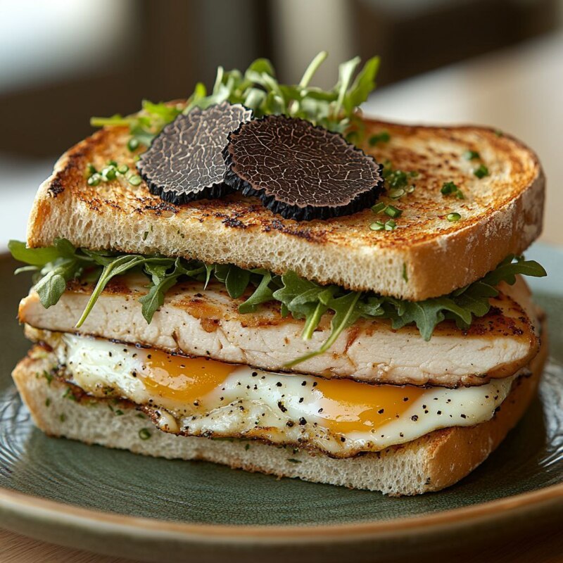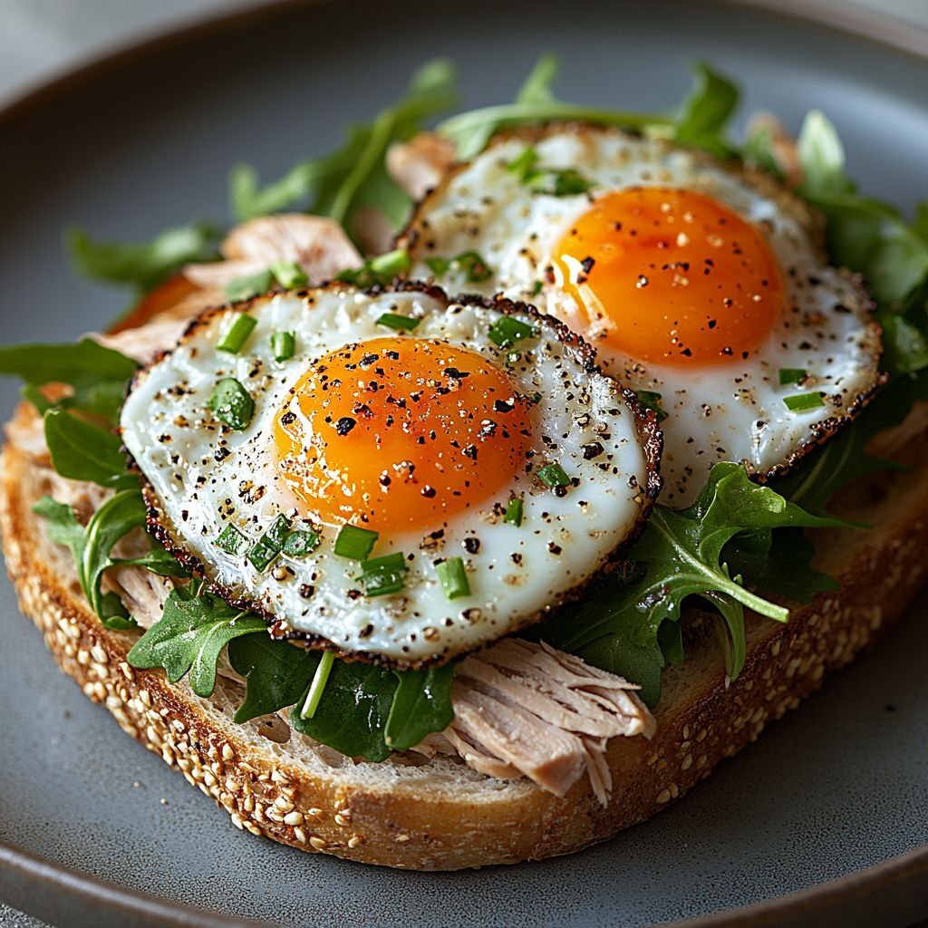 Гренка с индейкой и рукколой.