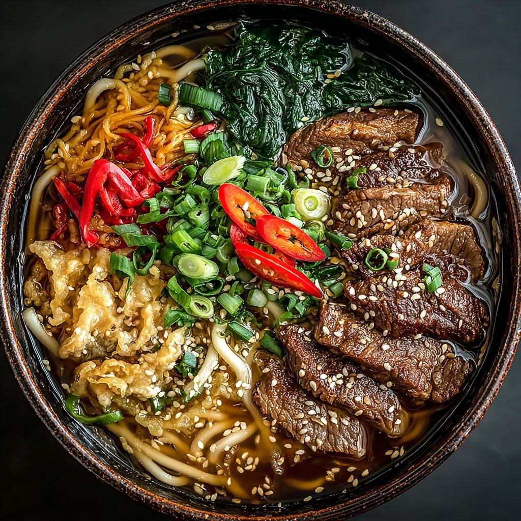 Удон с говядиной.