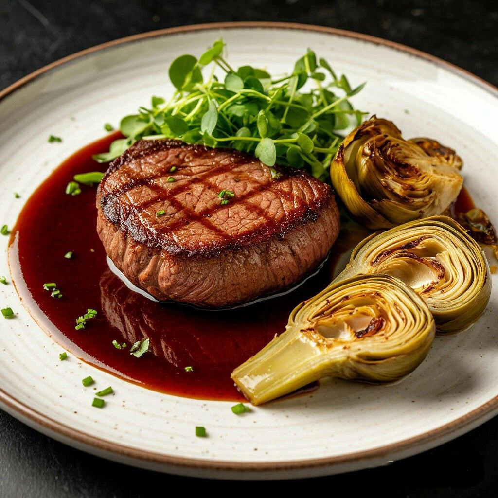 Стейк из телятины с артишоками.